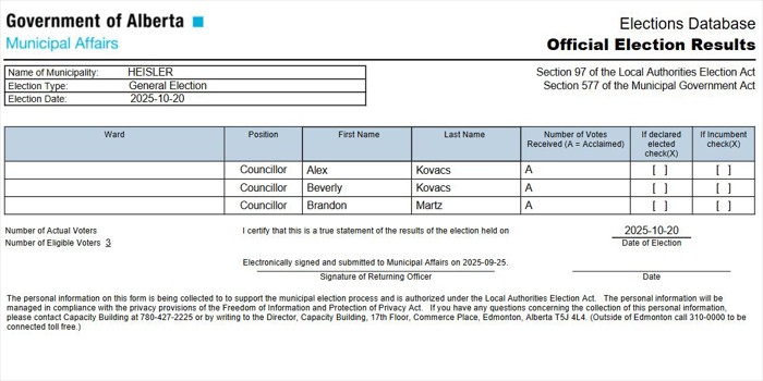 We are confident that our community will thrive and prosper along with the rest of our great Province. We are optimistic about our future and have created an atmosphere that will welcome new residents and we have many business opportunities. This is your opportunity to experience the very best that rural Alberta has to offer. Want to learn more? Please call our Administrator at 780.889.3774 or email her and she will be delighted to assist you in true Heisler fashion.